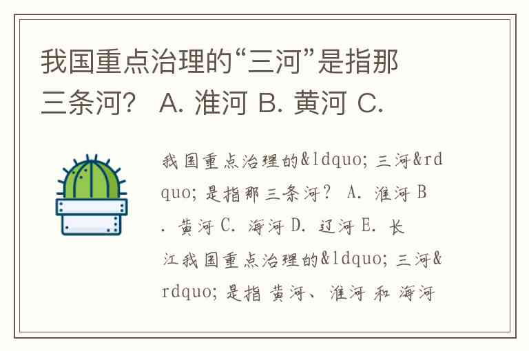 我国重点治理的“三河”是指那三条河? A. 淮河 B. 黄河 C. 海河 D. 辽河 E. 长江