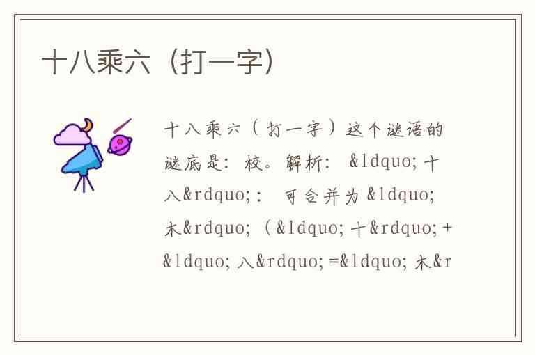 因此,“十八乘六”=“木”+“交”=“校”。