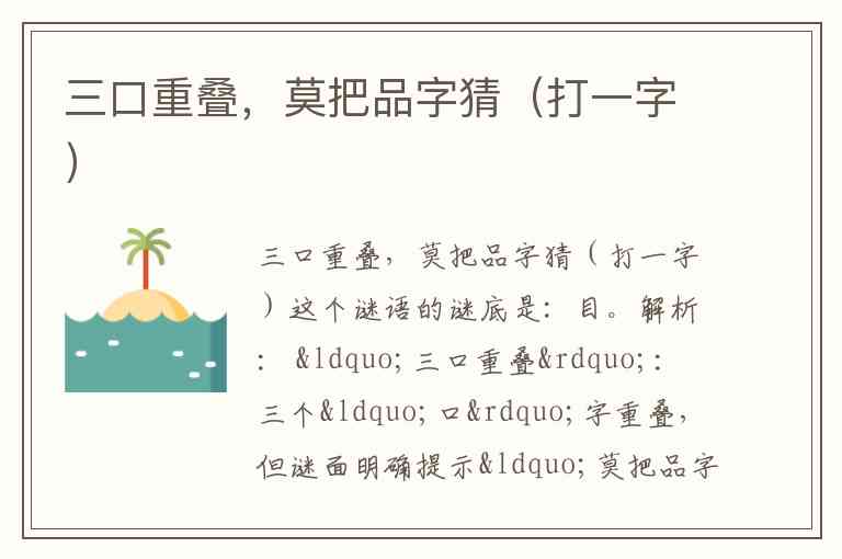 解析: “三口重叠”: 三个“口”字重叠,但谜面明确提示“莫把品字猜”,因此不是“品”。