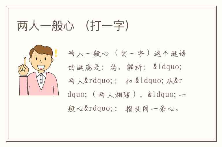 因此,“两人一般心”=“从”+“心”=“怂”。