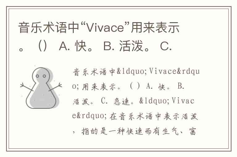 音乐术语中“Vivace”用来表示。() A. 快。 B. 活泼。 C. 急速。