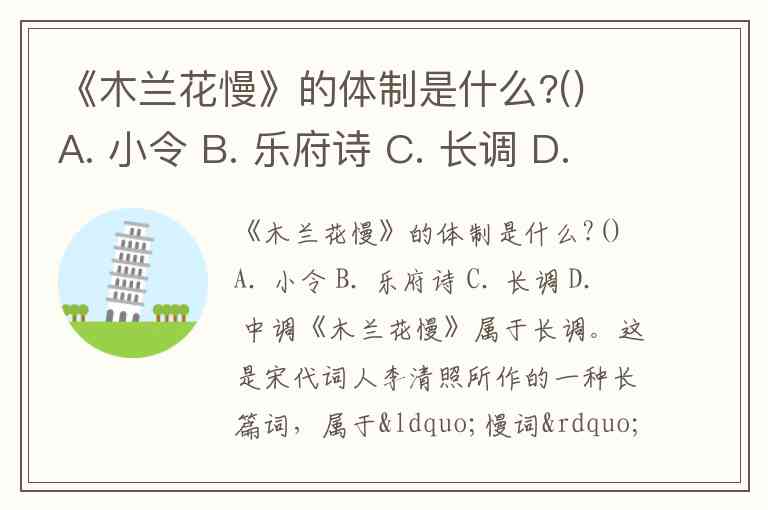 《木兰花慢》的体制是什么?() A. 小令 B. 乐府诗 C. 长调 D. 中调