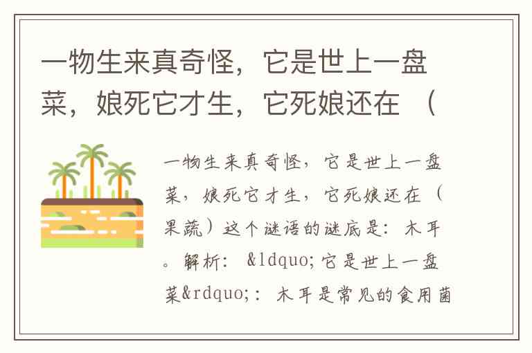 “娘死它才生”:木耳生长在枯死的树木(“娘”喻指树木)上。