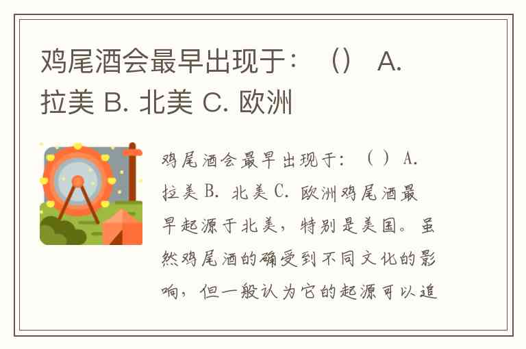 鸡尾酒会最早出现于:() A. 拉美 B. 北美 C. 欧洲