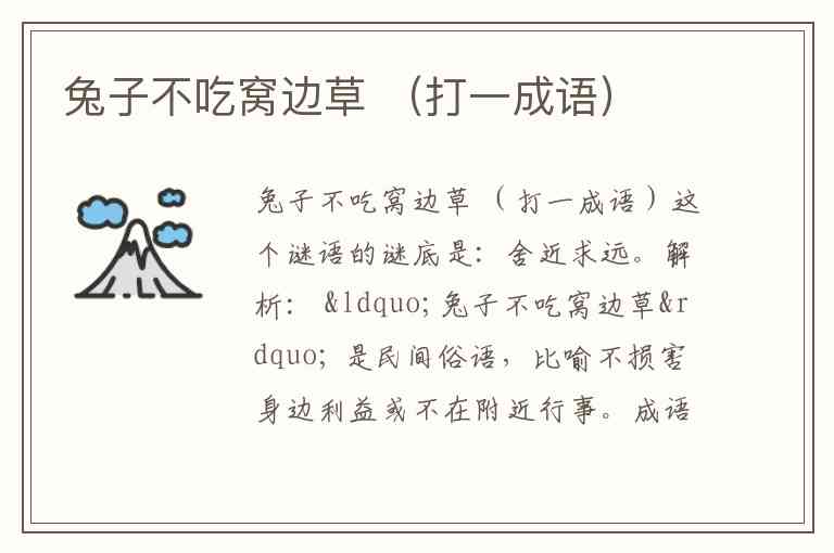 解析: “兔子不吃窝边草” 是民间俗语,比喻不损害身边利益或不在附近行事。