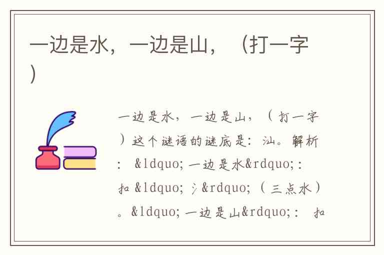 因此,“一边是水,一边是山”=“氵”+“山”=“汕”。