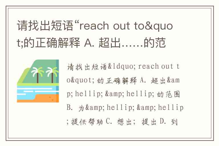请找出短语“reach out to"的正确解释 A. 超出……的范围 B. 为……提供帮助 C. 想出;提出 D. 到达