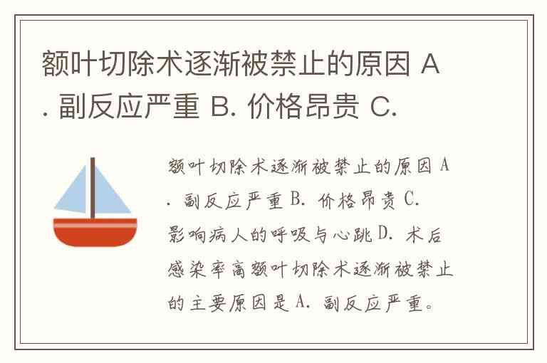 额叶切除术逐渐被禁止的原因 A. 副反应严重 B. 价格昂贵 C. 影响病人的呼吸与心跳 D. 术后感染率高