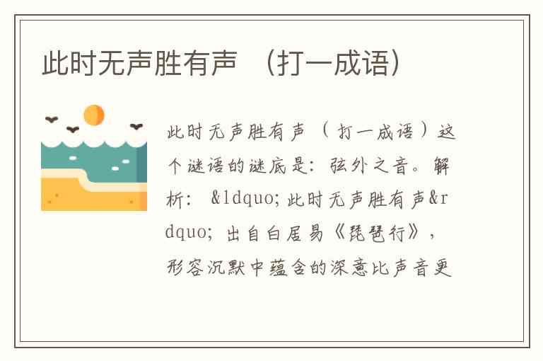 成语 “弦外之音” 本义是琴声之外的余音,比喻言外之意,与诗句中无声的意境双关呼应。