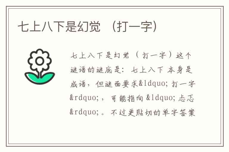 不过此谜逻辑较为迂回,常见版本中“七上八下”多直接作为成语谜面,打成语“忐忑不安”。
