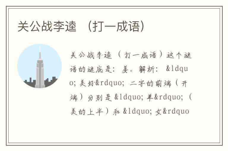 解析: “美好” 二字的前端(开端)分别是 “羊”(美的上半)和 “女”(好的左半)。
