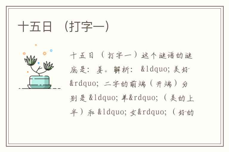 解析: “美好” 二字的前端(开端)分别是 “羊”(美的上半)和 “女”(好的左半)。