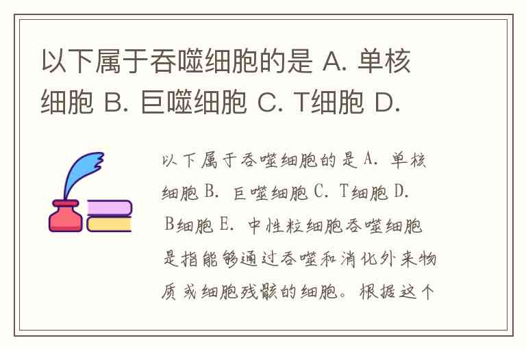 E. 中性粒细胞:中性粒细胞是另一种吞噬细胞,能够吞噬并消化细菌和其他微生物。