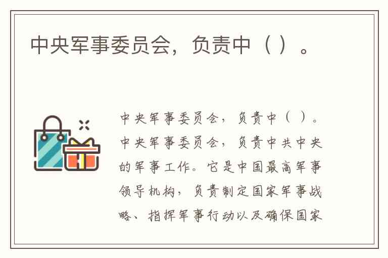 。它是中国最高军事领导机构,负责制定国家军事战略、指挥军事行动以及确保国家的军事安全等。