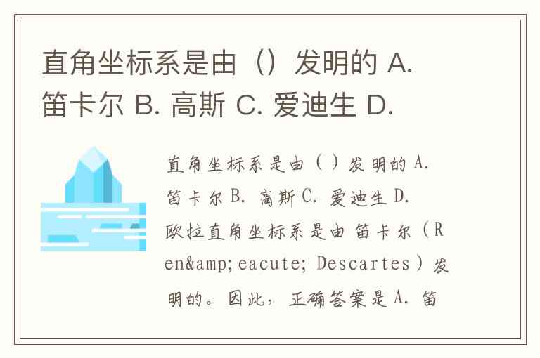 直角坐标系是由()发明的 A. 笛卡尔 B. 高斯 C. 爱迪生 D. 欧拉