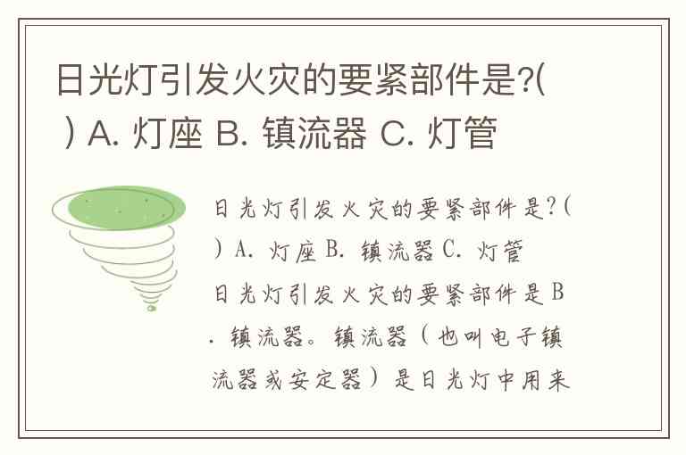 日光灯引发火灾的要紧部件是?( ) A. 灯座 B. 镇流器 C. 灯管