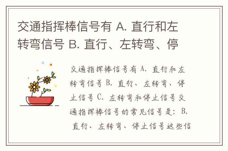 交通指挥棒信号有 A. 直行和左转弯信号 B. 直行、左转弯、停止信号 C. 左转弯和停止信号