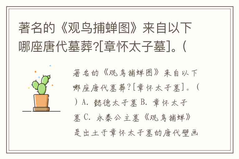 著名的《观鸟捕蝉图》来自以下哪座唐代墓葬?[章怀太子墓]。( ) A. 懿德太子墓 B. 章怀太子墓 C. 永泰公主墓