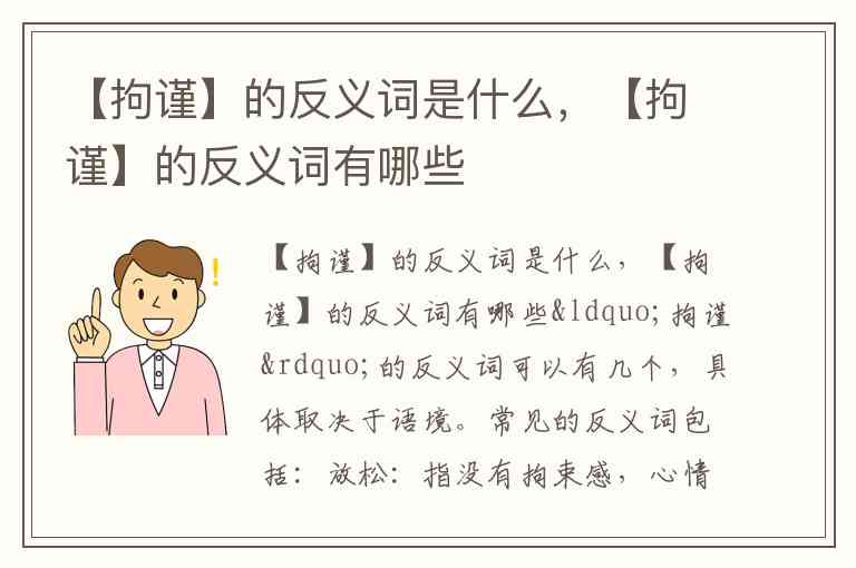 【拘谨】的反义词是什么,【拘谨】的反义词有哪些