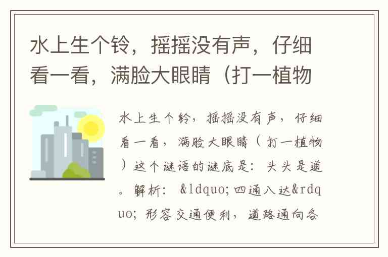 水上生个铃,摇摇没有声,仔细看一看,满脸大眼睛(打一植物)