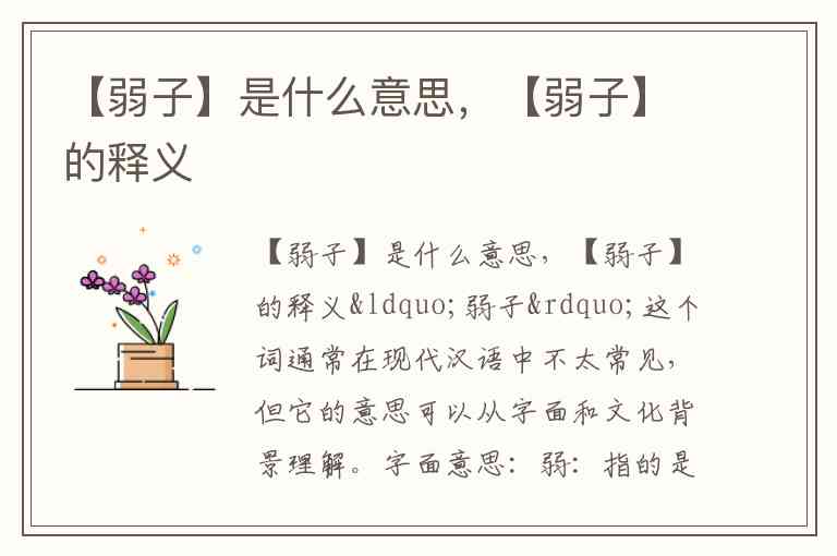 “弱子”这个词通常在现代汉语中不太常见,但它的意思可以从字面和文化背景理解。