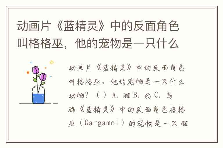 动画片《蓝精灵》中的反面角色叫格格巫,他的宠物是一只什么动物?() A. 猫 B. 狗 C. 乌鸦