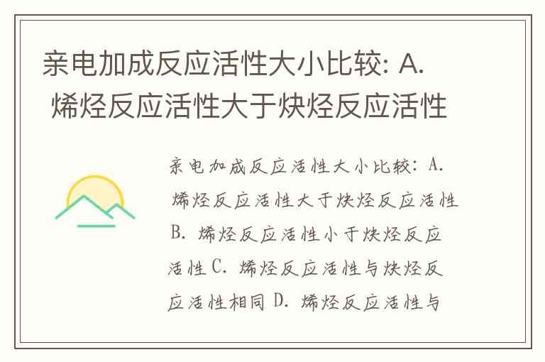 亲电加成反应活性大小比较: A. 烯烃反应活性大于炔烃反应活性 B. 烯烃反应活性小于炔烃反应活性 C. 烯烃反应活性与炔烃反应活性相同 D. 烯烃反应活性与炔烃反应活性无法比较