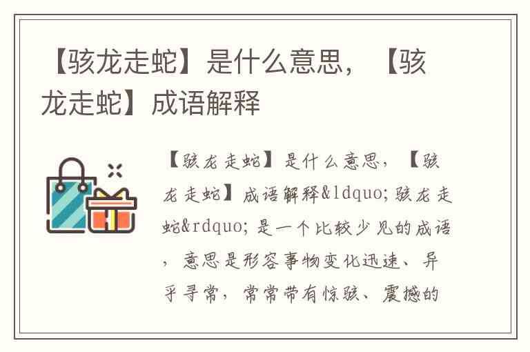 【骇龙走蛇】是什么意思,【骇龙走蛇】成语解释