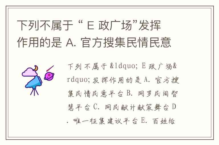 这个问题考察的是“E 政广场”的作用。根据题意,E 政广场应该是一个涉及民意征集、提供民间智慧的平台,供民众向政府提出建议和意见。因此,我们可以分析每个选项的含义:
