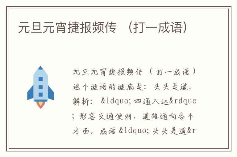 元旦元宵捷报频传 (打一成语)