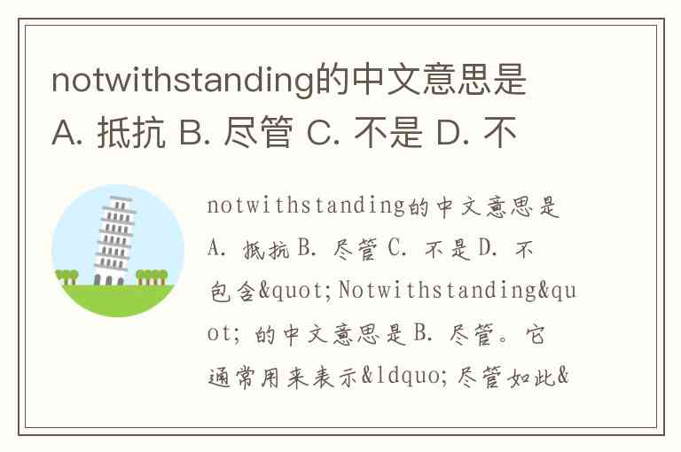 notwithstanding的中文意思是 A. 抵抗 B. 尽管 C. 不是 D. 不包含