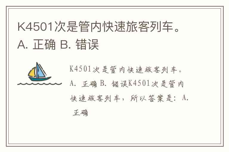 K4501次是管内快速旅客列车。 A. 正确 B. 错误