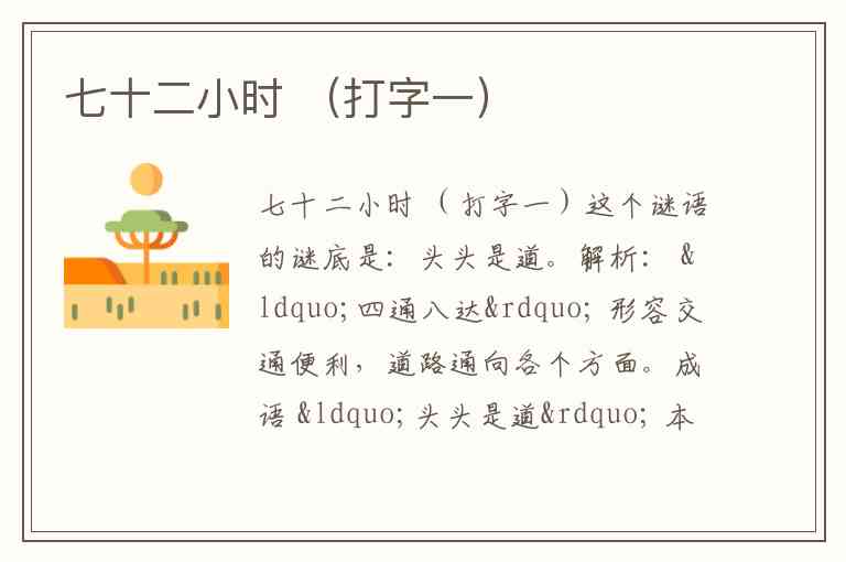 谜面“七十二小时”的谜底是:晶。
