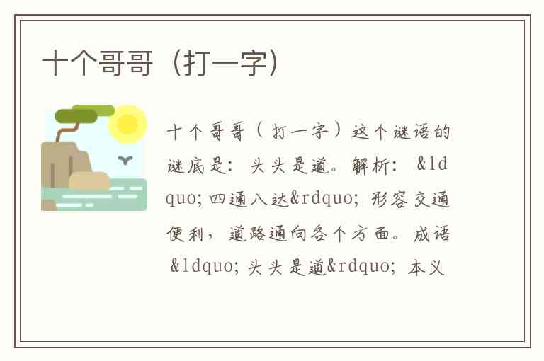 这个谜语的巧妙之处在于,它没有直接说“十个兄长”,而是用了更口语化的“十个哥哥”,让谜面显得生动有趣。