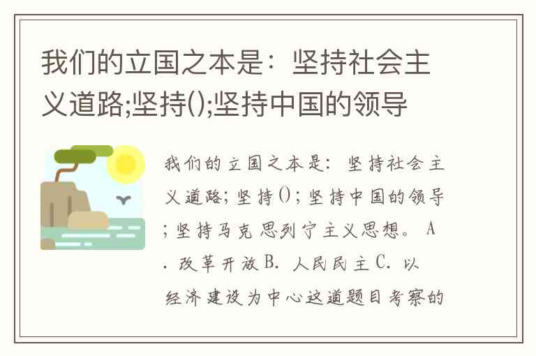 我们的立国之本是:坚持社会主义道路;坚持();坚持中国的领导;坚持马克 思列宁主义思想。 A. 改革开放 B. 人民民主 C. 以经济建设为中心