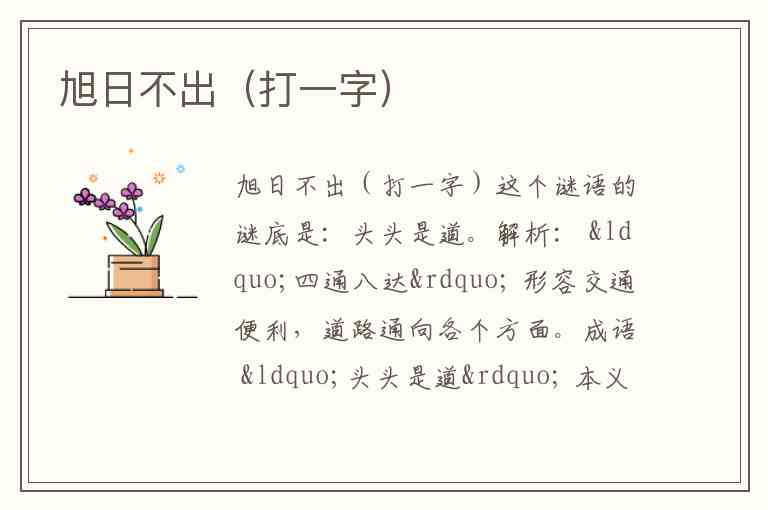 所以,整个谜面的逻辑是:旭(九 + 日)→ 日不出(去掉“日”)→ 剩下“九”。这是一个非常经典的字谜。