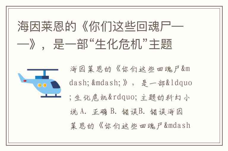 海因莱恩的《你们这些回魂尸——》,是一部“生化危机”主题的科幻小说 A. 正确 B. 错误