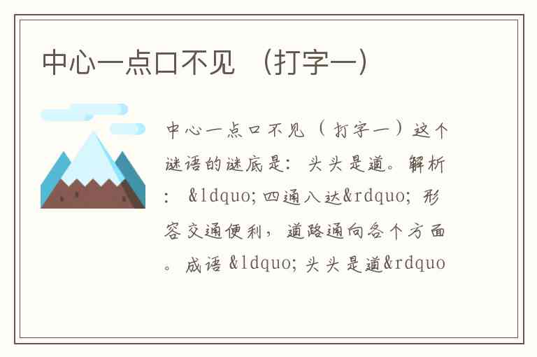 | 中心一点 | “中心”指的是谜底汉字的中心位置;操作是加上“一点”(即一个点“丶”)。 |