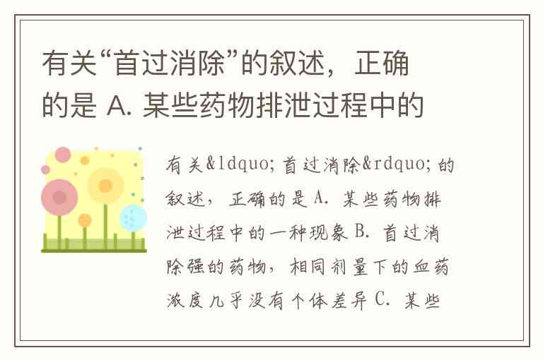 A:首过消除与药物的吸收和代谢有关,而不是排泄过程中的现象。