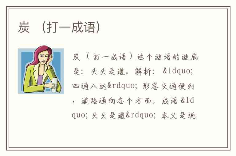 这个谜语的解法非常形象,运用了“拆字会意法”,将“炭”字的上下结构与成语的含义巧妙联系。