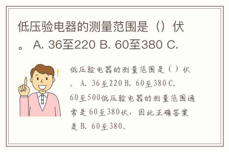 低压验电器的测量范围是()伏。 A. 36至220 B. 60至380 C. 60至500