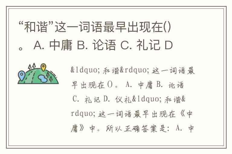 “和谐”这一词语最早出现在()。 A. 中庸 B. 论语 C. 礼记 D. 仪礼