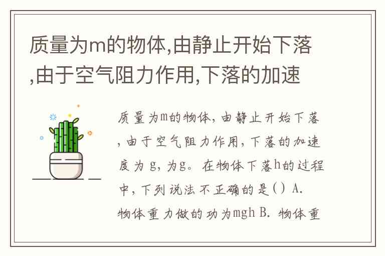 在这个问题中,我们要分析物体下落过程中涉及的不同力学概念。物体下落过程中,除了重力,还有空气阻力的作用,且题目中提到加速度恒定为 (即自由下落的加速度)。