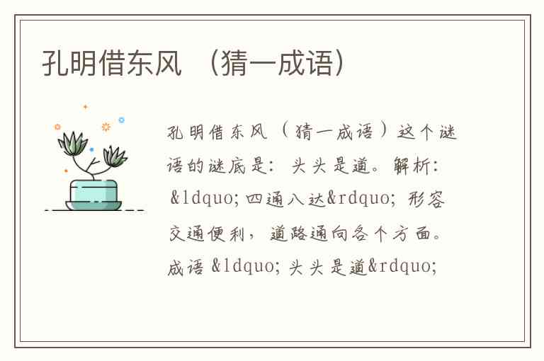 关于谜面“孔明借东风”,其对应的成语是 巧用天时。