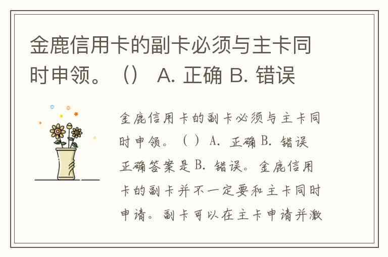 金鹿信用卡的副卡必须与主卡同时申领。() A. 正确 B. 错误