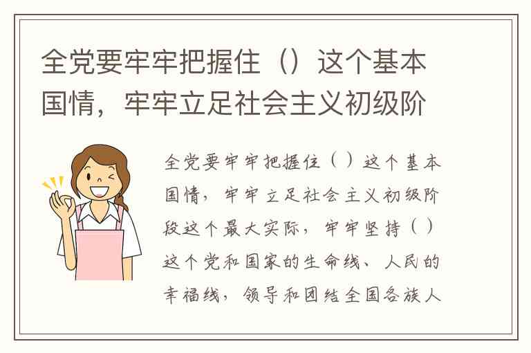社会主义初级阶段:这是中国的基本国情,意味着中国仍处于相对落后的发展阶段,必须坚持和发展中国特色社会主义,逐步推进国家的现代化。