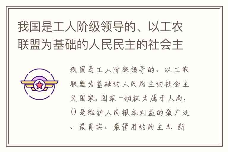 我国是工人阶级领导的、以工农联盟为基础的人民民主的社会主义国家,国家 -切权力属于人民,()是维护人民根本利益的最广泛、最真实、最管用的民主 A. 新时代中国特色社会主义 B. 我国社会主义民主 C. 人民民主