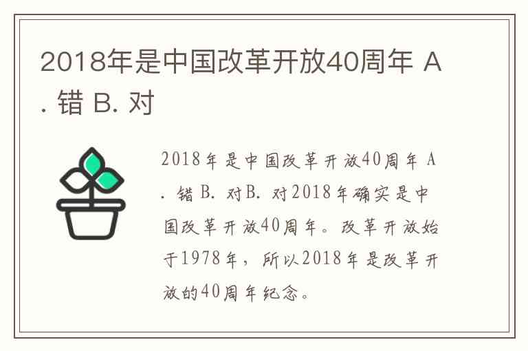 2018年确实是中国改革开放40周年。改革开放始于1978年,所以2018年是改革开放的40周年纪念。