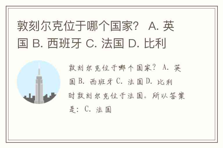 敦刻尔克位于哪个国家? A. 英国 B. 西班牙 C. 法国 D. 比利时