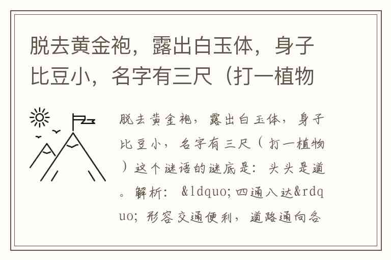 脱去黄金袍,露出白玉体,身子比豆小,名字有三尺(打一植物)